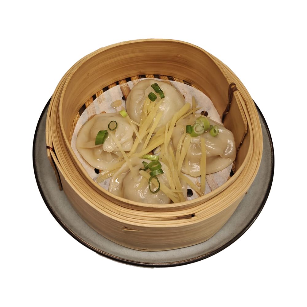 Gestoomd dumplings 5st. met een mix van varkensvlees en garnalen