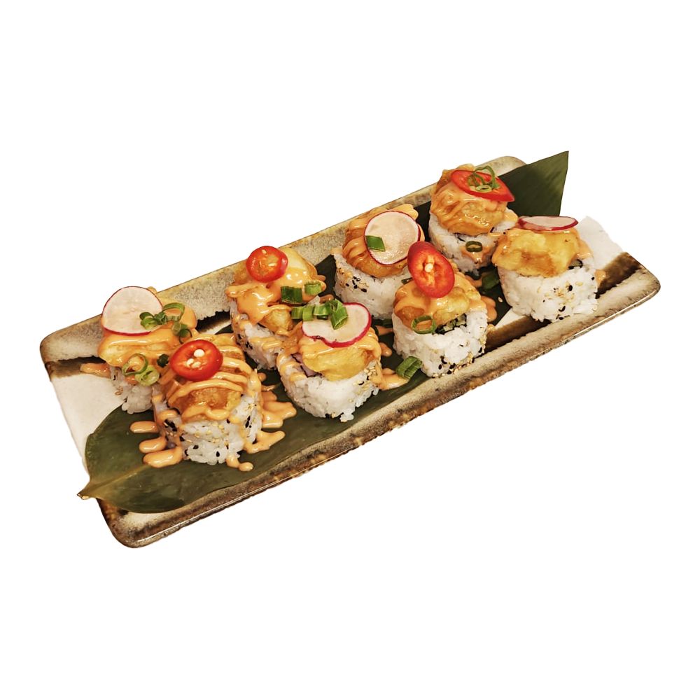 8 stuks. gefrituurde sushi, tonijn, avocado en bonito